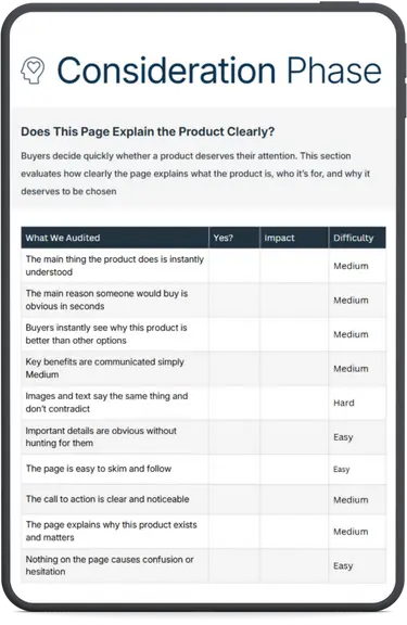 Every step of your funnel is checked for friction, clarity, and trust issues.